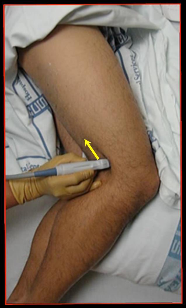 带箭头的腘部探头位置图