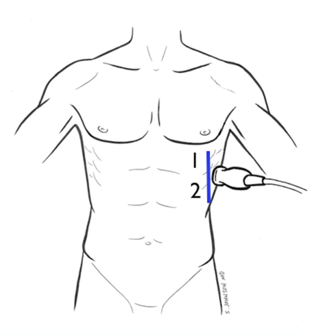 eFAST 左上腹 (LUQ) 视图 1 图示
