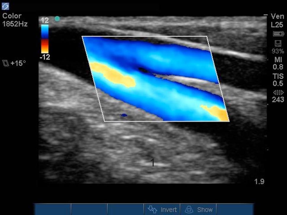 外周 IV (PIV) 静脉彩色血流图像