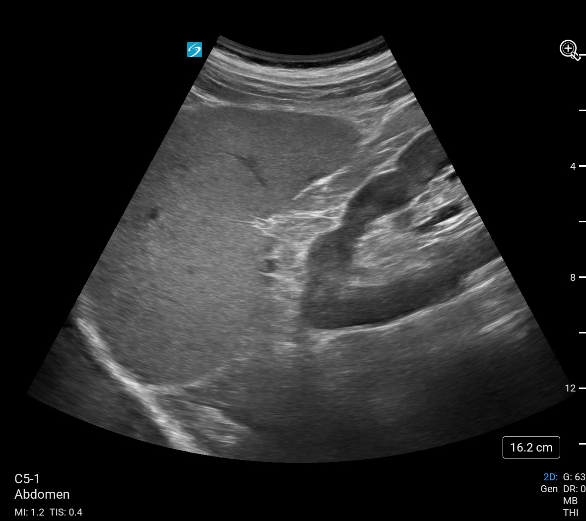 eFAST Left Upper Quadrant (LUQ) View (Sonosite PX C5-1) Image