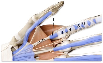 Hand Flexor Tendon Anatomy 1 Graphic 2nd Flexor Tendon Sheath 2nd Flexor Tendon A1 Pulley A2 Pulley C1 Pulley A3 Pulley