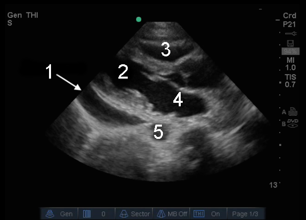 Heart Parasternal Long Axis (PLAX) Pericardial Fluid Image Pericardial Effusion (Fluid) Left Ventricle (LV) Right Ventricle (RV) Left Atrium (LA) Aorta (Ao)