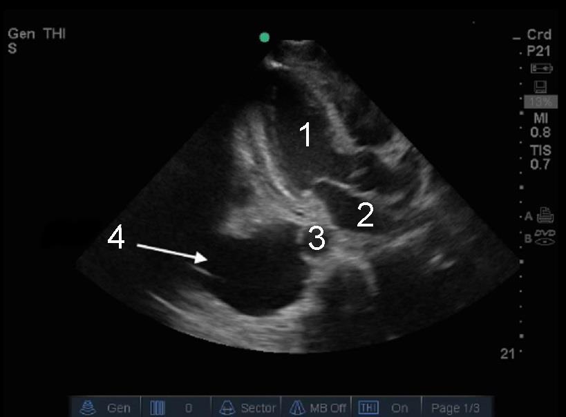 Heart Parasternal Long Axis (PLAX) Pleural Fluid 2 Image Left Ventricle (LV) Left Atrium (LA) Aorta Right Pleural Fluid (Effusion)