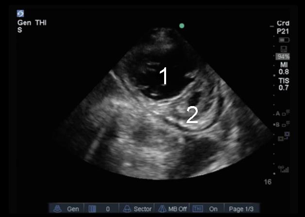 Heart Parasternal Short Axis (PSAX) Potential Cor Pulmonale Image Right Ventricle (RV) Left Ventricle (LV)