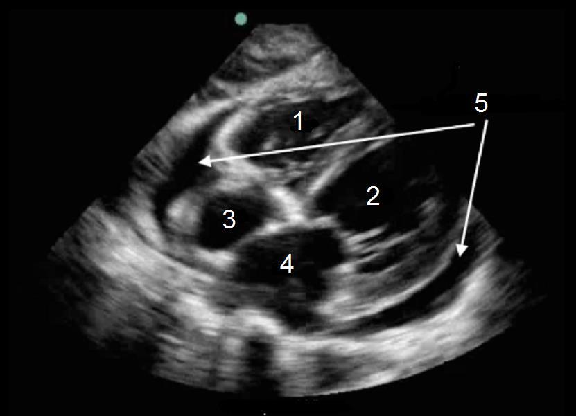 Heart Subxiphoid Pericardial Fluid 2 Image Right Ventricle (RV) Left Ventricle (LV) Right Atrium (RA) Left Atrium (LA) Pericardial Fluid (Effusion)