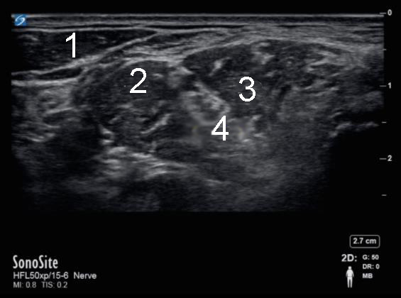 Interscalene Nerve Block - Pre-Injection Image Sternocleidomastoid Muscle (SCM) Anterior Scalene Middle Scalene Brachial Plexus