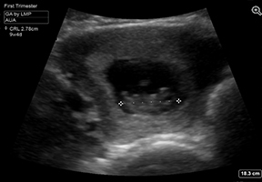 Pelvic Transabdominal (TA) Intrauterine Pregnancy (IUP) Crown Rump Length (CRL) Image