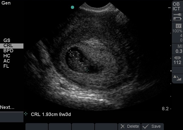 Pelvic Transvaginal (TV) Intrauterine Pregnancy (IUP) with Crown Rump Length (CRL) 8wk-3d 2 Image