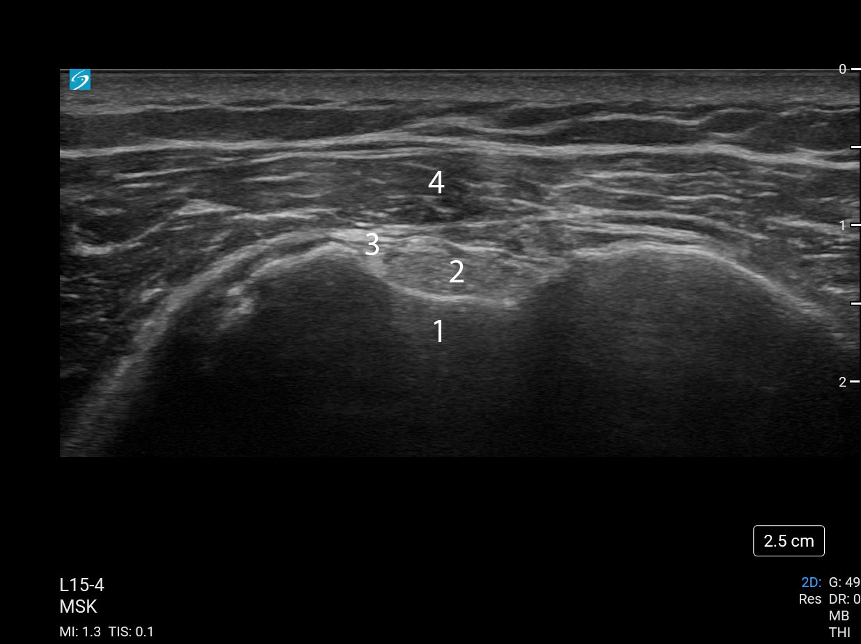Shoulder Biceps Tendon Short Axis 1 (Sonosite PX L15-4) Image Biceps Groove Biceps Tendon Ascending Branch of the Lateral Circumflex Humeral Artery Anterior Deltoid Muscle