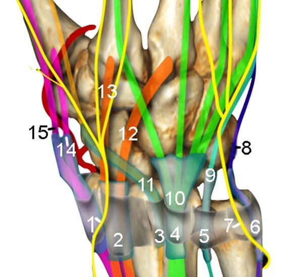 - Abductor Pollicis Longus (APL) and Extensor Pollicis Brevis (EPB) (Compartment 1)