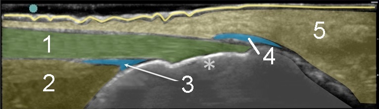 Bild 1: Fuß und Sprunggelenk, Achillessehne Achillessehne Kager'scher Fettkörper Potenzielle Bursa retrocalcanea Bursa retrocalcanea Fettgewebe (posteriorer Teil der Ferse)