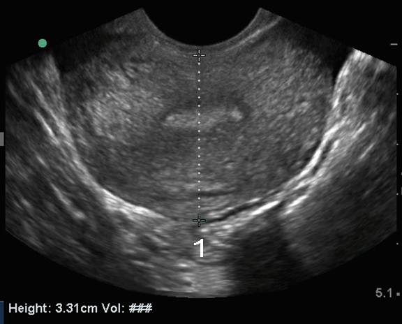 Bild 2: Becken, endovaginaler Ultraschall d. Uterus, transversal