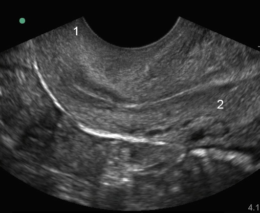 Bild: Becken, endovaginaler Ultraschall des Uterus – Unteres Segment des Uterus, sagittal Cervix Mittlerer Uterus
