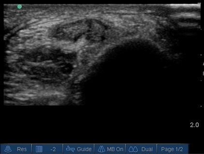 Bild: Fuß und Sprunggelenk, Dynamische Ultraschalluntersuchung bei einer Sehnenruptur des Peroneus brevis