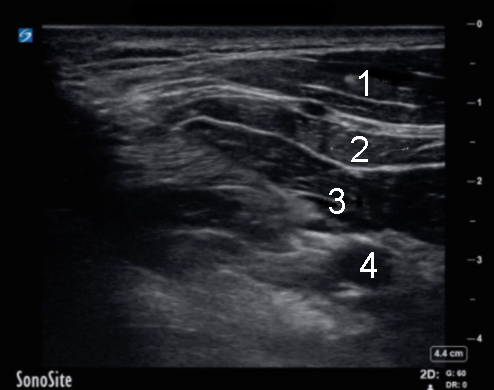 Bild: Infraklavikulärer Ultraschall Musculus pectoralis major Musculus pectoralis minor Nadelspitze Arterie