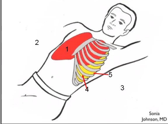 Grafik: Patientenlagerung bei einer Thorakozentese (Pleurapunktion), lateraler Ansatz