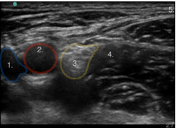 Bloqueo del nervio femoral - Descripción de la imagen del nervio femoral Vena femoral Arteria femoral Nervio femoral Músculo ilíaco