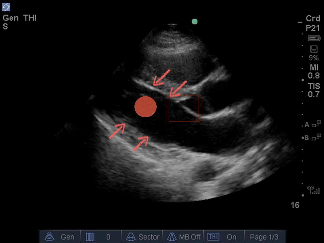 Punto rojo: mire aquí para evaluar el desplazamiento del endocardio