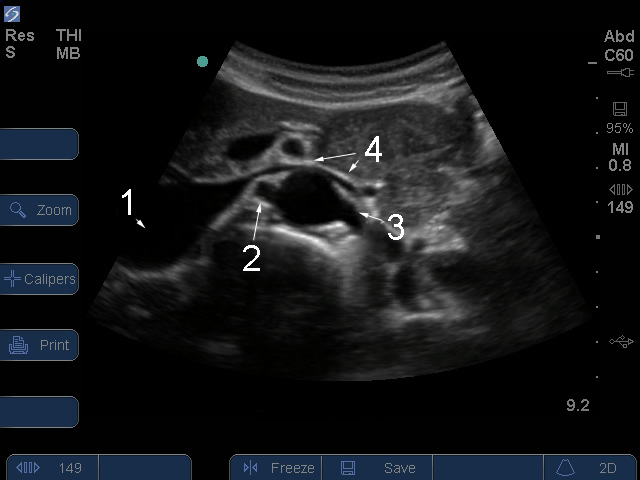 Serie S: Aorta/arterias transversales proximales - Imagen Orígenes de arteria renal Vena cava inferior (VCI) Arteria derecha Arteria izquierda Vena izquierda