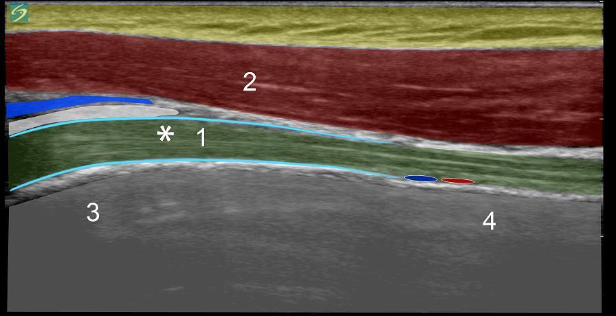 Illustration - Épaule : Antérieure, Coupe grand axe Tendon du biceps Muscle deltoïde antérieur Tête humérale Col de l'humérus