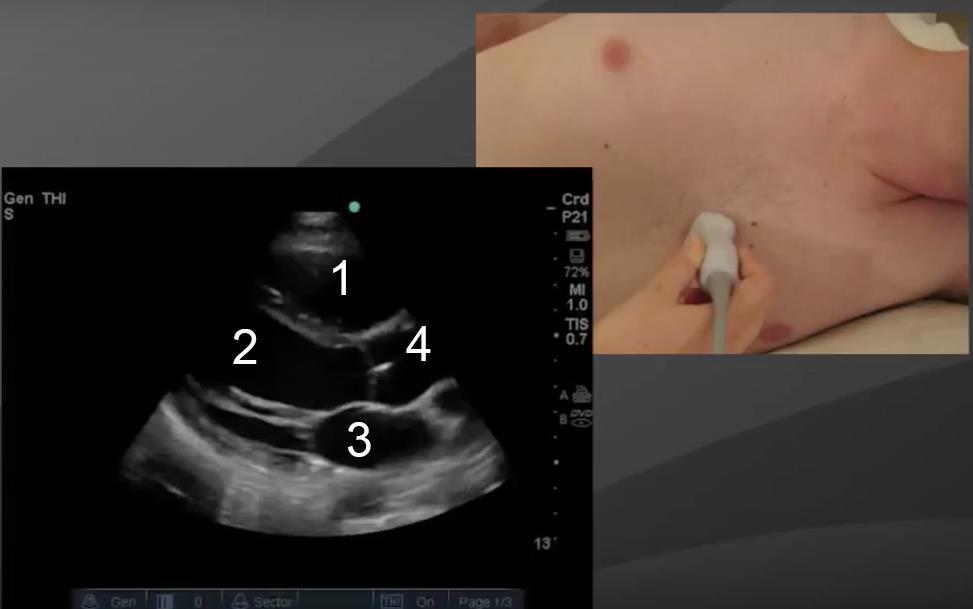 Image : Cœur : Coupe parasternale grand axe (PLAX) 1 Ventricule droit Ventricule gauche Aorte Atrium gauche