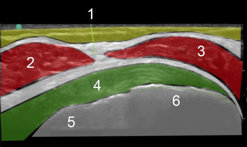 Image - Épaule : Tendon sous-épineux – Enthèse, Coupe grand axe 2 Septation du fascia du deltoïde Deltoïde postérieur Deltoïde moyen Tendon sous-épineux Tête humérale Facette moyenne du trochiter