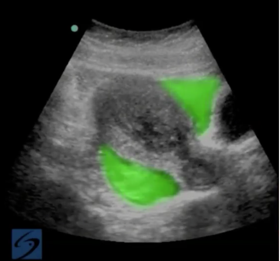 強調表示されたイメージの骨盤子宮外妊娠の破裂