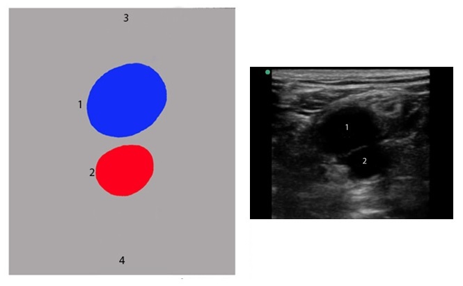 深部静脈血栓症(DVT)と画像膝窩血管の図