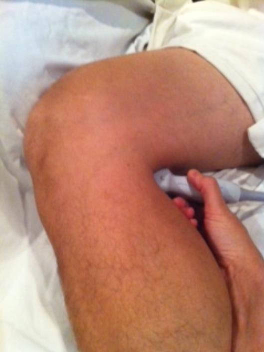深部静脈血栓症(DVT)膝窩手の位置の図